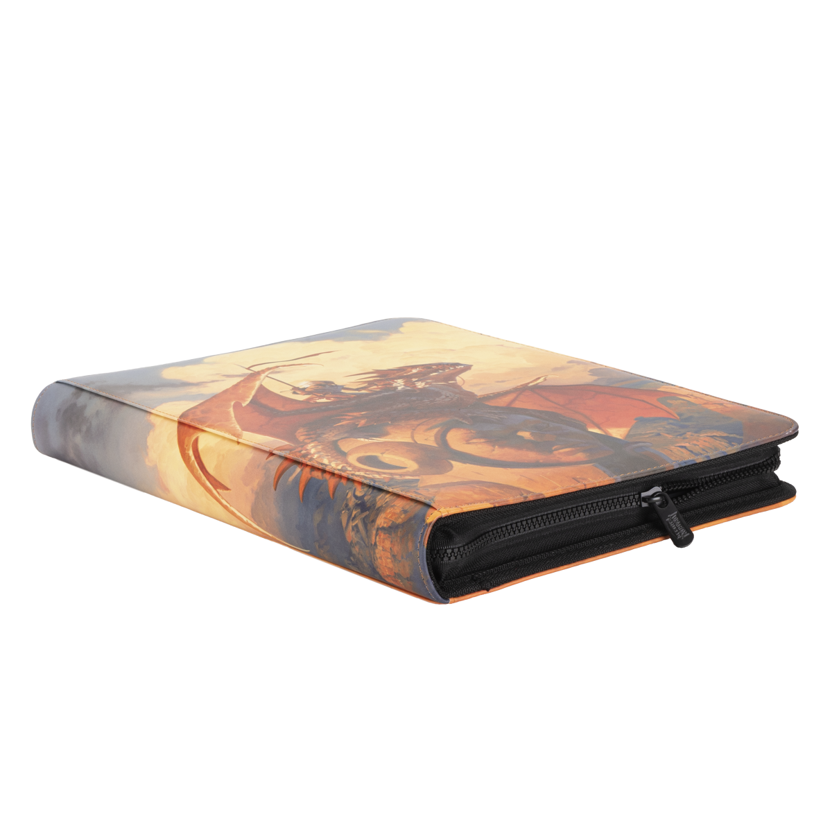 The stunning, graphic cover opens to reveal a high-quality interior, perfect for protecting your precious collection. Free samples of Dragon Shield 16- and 18-pocket pages in both Non-Glare and Clear are included. The sturdy zipper secures the binder during transport, and you can slide a label into the spine pocket for ultimate organization.